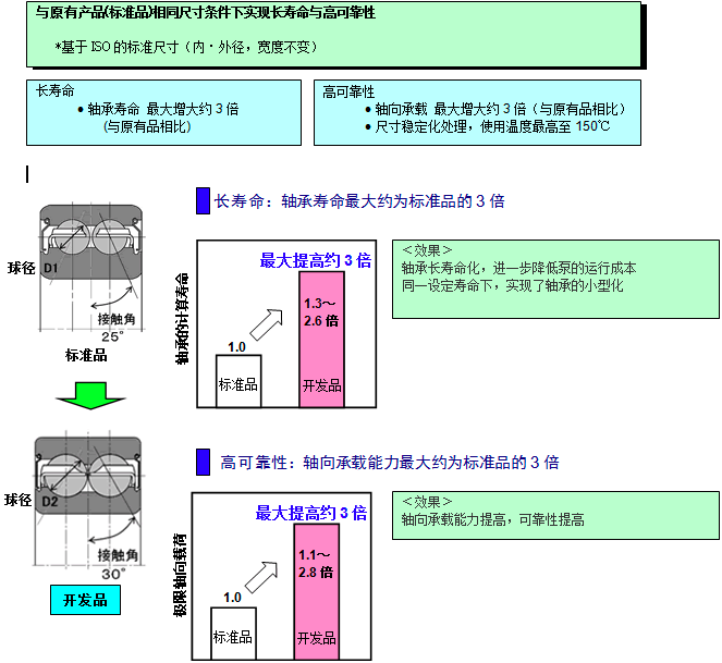 ◆ 軸承壽命最大提高3倍(與原有產品相比)