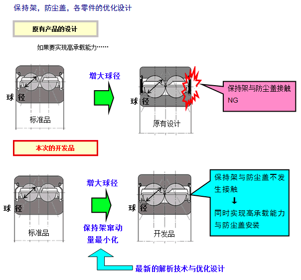 通過優化設計,新開發的密封軸承的壽命比原有產品提高了1.3~2.6倍,在同樣壽命要求可實現軸承尺寸的小型化。