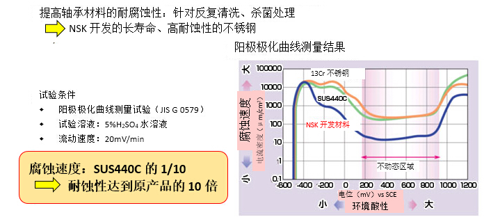 該產(chǎn)品是 NSK運(yùn)用自身核心技術(shù)之一的材料技術(shù)開發(fā)出的高耐蝕性材料,結(jié)合優(yōu)異的零部件設(shè)計(jì)及加工技術(shù),使其疲勞壽命達(dá)到原產(chǎn)品的1.5倍。應(yīng)對(duì)現(xiàn)今市場(chǎng)上高速手機(jī)使用的軸承尺寸形狀多樣化的需求,NSK同時(shí)拓寬了本品的產(chǎn)品系列。