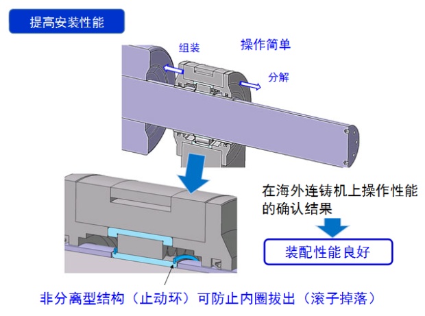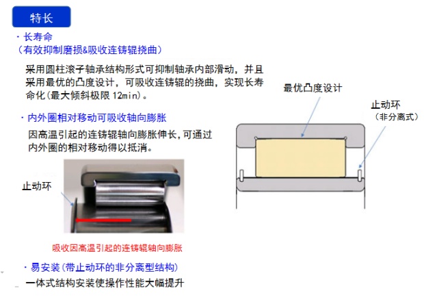 因高溫引起的連鑄輥軸向膨脹伸長,可通過內外圈的相對移動得以抵消。