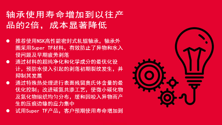 - 異物混入工況下,壽命最高可達(dá)普通滲碳鋼的10倍